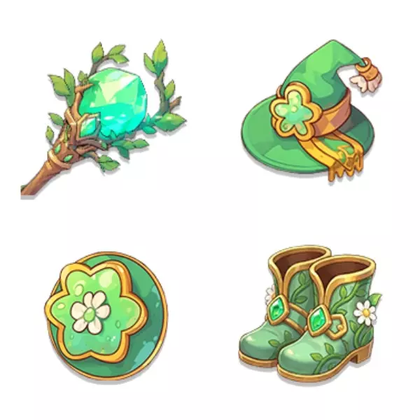 武器-密林杖,头部-密林帽,防具-密林盾,鞋子-密林靴