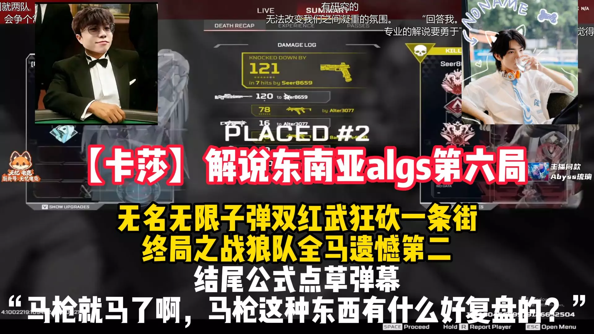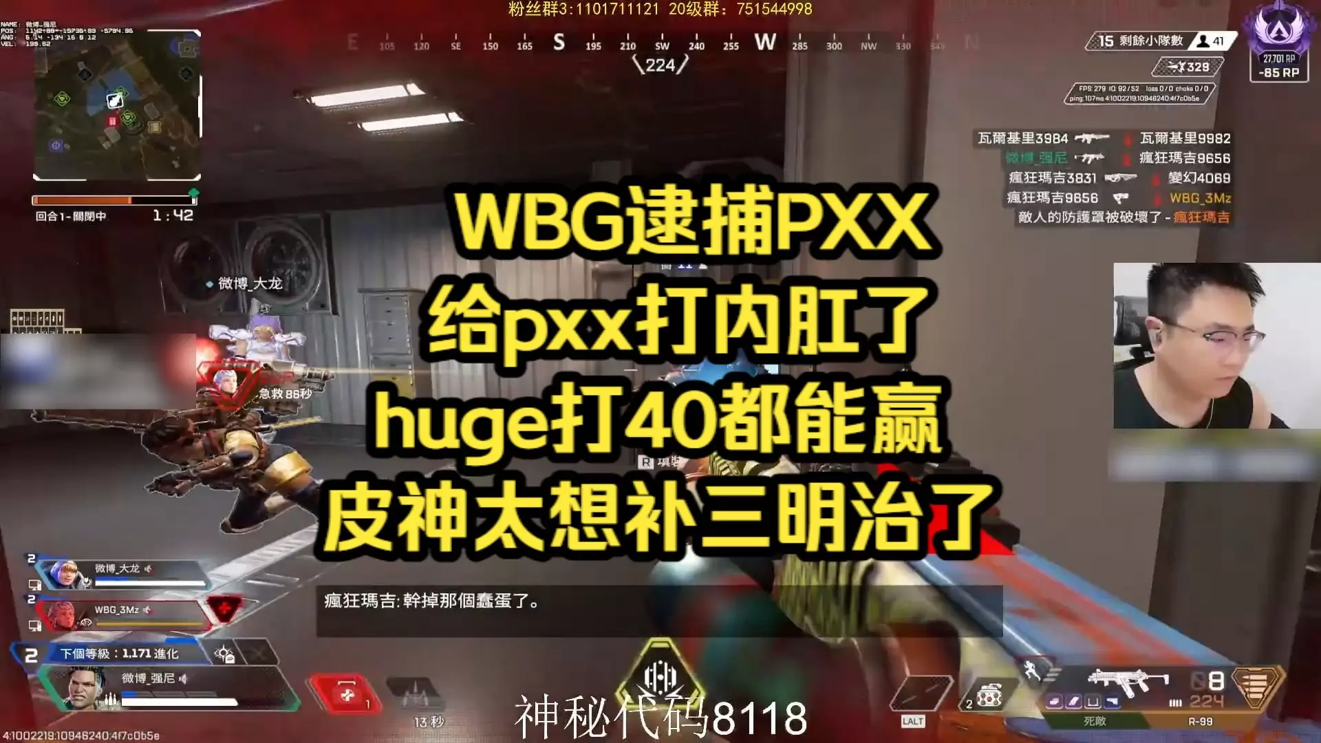 玩家皮特174在《Apex英雄》的ALGS赛事中,加入PXX战队,开局预感这局是大分局,最终拿下八杀,取得第三名,应验了自己的预感。