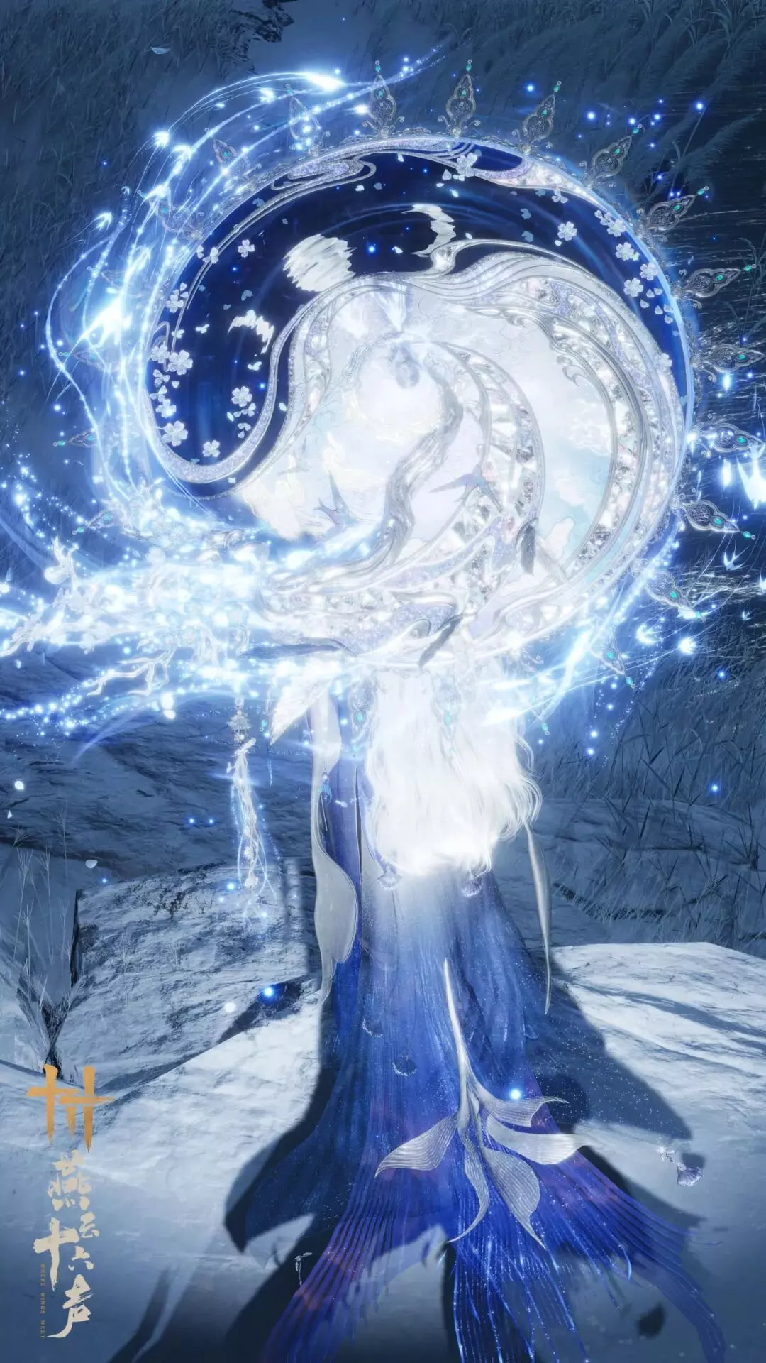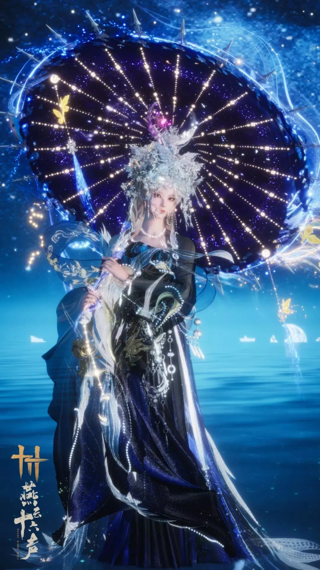武器外观·伞【藏音·星河欲曙】,与武器外观·扇【藏音·霓裳天风】互为双生,其灵感取自一段由盛景入离歌的旧梦:曾有长夜清欢、风月同游,也曾有繁华骤散、故景成追。有人穷尽碧落黄泉,踏遍尘寰云海,只为寻回那道萦绕不去的旧影。直至星河将曙,仙山如幻,一段未尽情意,终在天光欲明之际遥遥相续。
