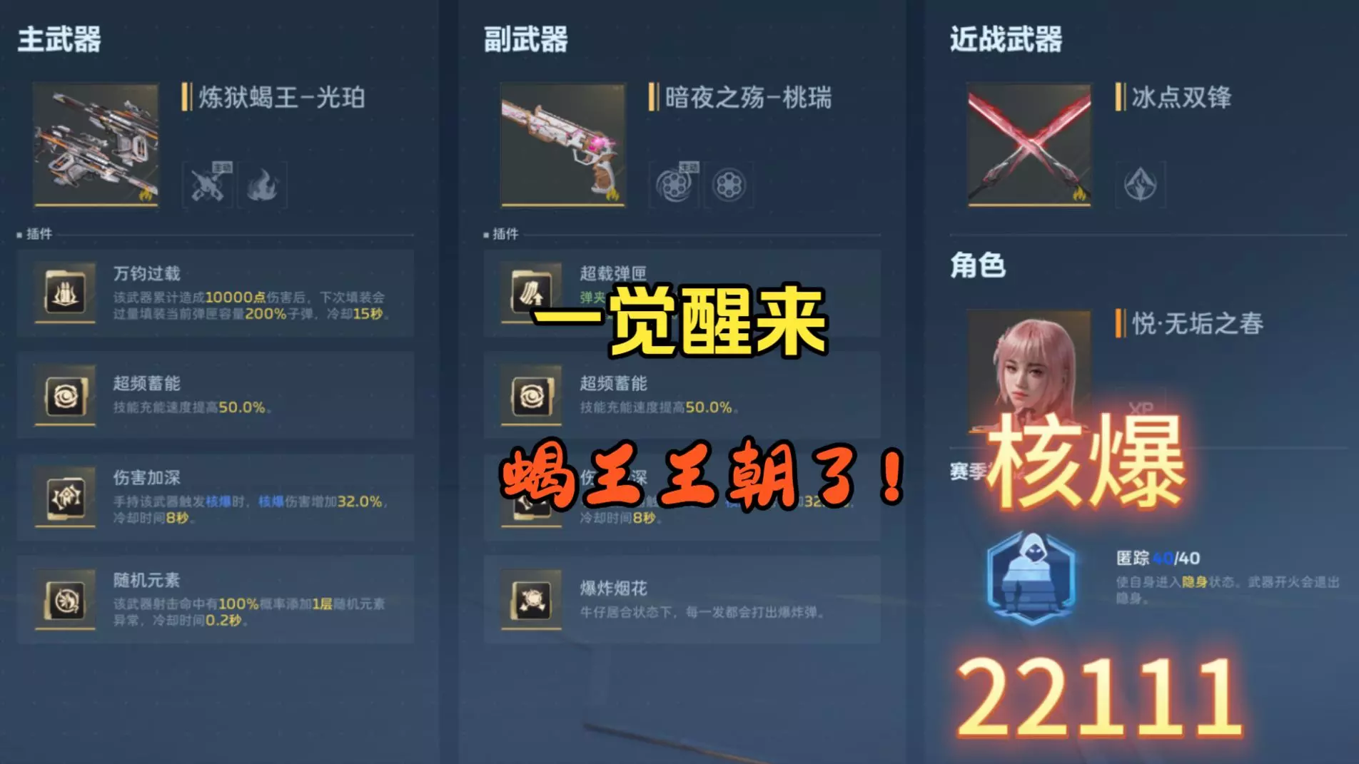 如有讹误欢迎指出】 S2版本主流神器天赋搭配总结,从夯到垃图文详解实战搭配。版本T0飓风之龙插件搭配主要有两种玩法,追踪龙和集束九龙。 追踪龙插件搭配:霰弹满中,多重激返,霰弹增伤,索命龙炎。副武器苔色风暴,近战武装战斧。追龙主要是万金油,全场景通吃和输出端破韧,兼顾刷怪能力,属于是次数盾的严父。18段伤害破韧能力无人能及。选择斧头是因为追踪龙不需要近距增幅加伤,而龙炎弹伤害分为6段贯穿,6段直击,6段爆炸,能完美吃到三分之一的加上。而苔色暴风和2号插件多重激返“不阻回返能”特点相契合,能实现一个F打出22发龙炎弹的完美续航,实战效果远胜超频蓄能,这套组合up在开服版本就作过推荐,核心原因是因为龙哥F为“不阻回型技能”,在技能过程中可回充。天赋选择核爆,加点叠层结算路线均衡,能实现在BOSS战破韧端的完美输出,而次选传染能在刷怪端也拥有不错的表现,同时能把这套给蝎王使用。集束九龙搭配:聚能弹道,超频蓄能或多重激返,模式增幅,龙炎推进。副武器首选振弦,其次苔色暴风,近战铁骨或冰点双锋。天赋被动首选强化射击,次选核爆与头奖,天赋加点首选结算路线。龙哥的主要出伤依赖于赛季天赋直伤,匿踪甚至无需点满即可发挥全额效果。破隐流的核心在于命中增加爆伤,龙完美契合技能特点,仅需一发龙炎弹即可吃满。而铁骨出伤期望在考虑模式爆发对轴的情况下,略强于冰点双锋,但各位需要知道的是,实战情况多变,所以3号插件选择近距增幅搭配冰点双锋,其实在野房不会与模式增幅有太大差距。哪怕在S3赛季,只要集束霰弹不删,龙依旧是版本T0.5的位置,龙在S1弱势的原因是散射九龙打不满。 而接下来则是版本之子典藏飞刀的搭配,飞刀主要有三套插件搭配,其一通用流:万钧过载,超频蓄能,层峦叠势,炎刃。其二破盾流:解构装填,解构充能,解构增幅,炎刃。副武器均搭配振弦。其三跑图流,仅需将通用流的1号插件替换为充能弹药即可,副武器选择乘风快递。天赋分支选择超频或传染均可,物理系主要走结算游龙路线。飞刀近战首选鬼影长枪,搭配振弦被动常驻的换弹射速提升,远超复合弓所带来的加成。另外,飞刀其实还有联动提升,复合弓分身天赋等多种带法,但综合实战表现,个人更推荐万金油的万钧振弦匿踪玩法。匿踪短CD兼具爆发跑图生存能力,对精英怪表现出色,特别是樱之城的金甲分批次刷新,仅需一波短轴爆发便能轻松K头。而飞刀射速慢换弹快的特点,搭配上振弦鬼影长枪的换弹速度提升,万钧其实完全可以取代破盾流插件,效果颇为不俗。作为当前版本刷怪T0神器,当之无愧。 其次是版本T0.5炼狱蝎王搭配,复合弓炎臂长轴输出流:万钧过载,命中储能或共鸣射击,致命节拍,随机元素。副武器首选复合弓,天赋搭配走叠层核爆,加点如图。在炎臂天赋的加强下,新版本的蝎王非常适合多动BOSS。而此前版本相对强势的则是核爆左轮,在蝎王插件不变的情况下,将副武器替换为左轮,炎臂切换匿踪,但这套操作成本较高,不推荐使用,蝎王在开服版本up便首推复合弓。另外,炎臂需要炼狱才有增伤,因此充能弹药在后期无法实现无缝续航,万钧也可以不带共鸣射击,蝎王F聊胜于无。所以蝎王的输出搭配以第一套为准,左轮只适合补伤害和短轴爆发,秒掉樱花妹的机制技能。当然,蝎王还有最强的传染流刷怪玩法,插件搭配仅需将1号替换为破盾装填即可,被动天赋选择和飞刀一样的传染路线,可以点弱点叠层。传染蝎王的刷怪表现在精英怪扎堆时远胜飞刀。 来到版本轮椅死神猎手,依旧是两套搭配,其一核爆能源轮椅流,插件选择:万钧过载,闪身,钝化增伤,狼狩,副武器能源之影,近战血怨或鬼影长枪,天赋选择全息同调,被动核爆,通用加点为弱点叠层路线,如图所示。其二匿踪左轮爆发流,死神插件不变,仅需将副武器替换为暗夜之殇,同时近战选择冰点,死神也可享受近战加成,主天赋匿踪,通用依旧是叠层。其实死神1号插件可以选择核爆小反哺,万钧并不是最优解,一切以各位玩家实战手感为准。个人更推荐轮椅流,死神非常适合移动端玩家。