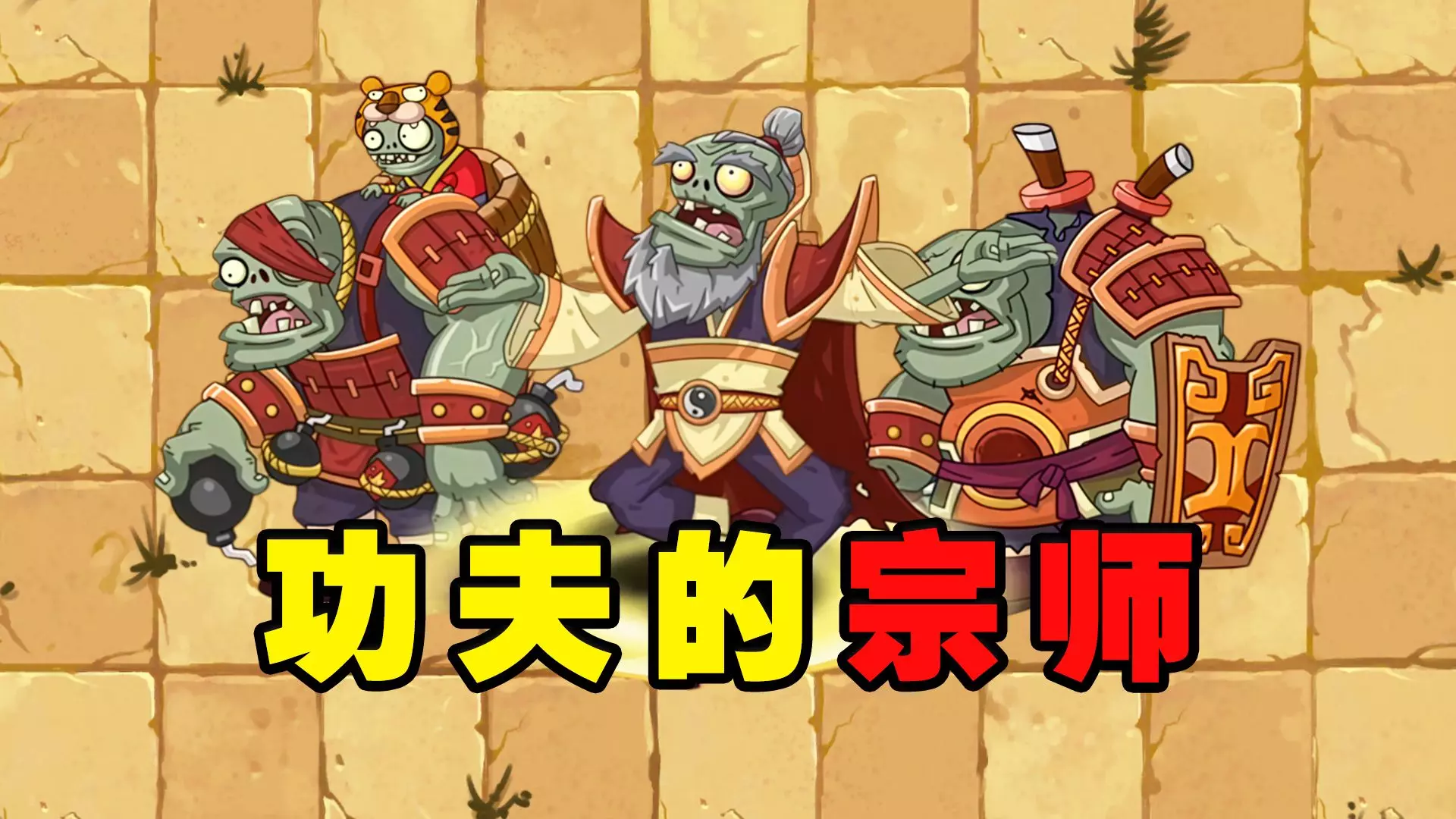 这是《植物大战僵尸》功夫世界第20天的游戏内容展示,画面呈现了选植物、布置植物对战僵尸的过程,还立下10万粉女装的flag,求粉丝支持。