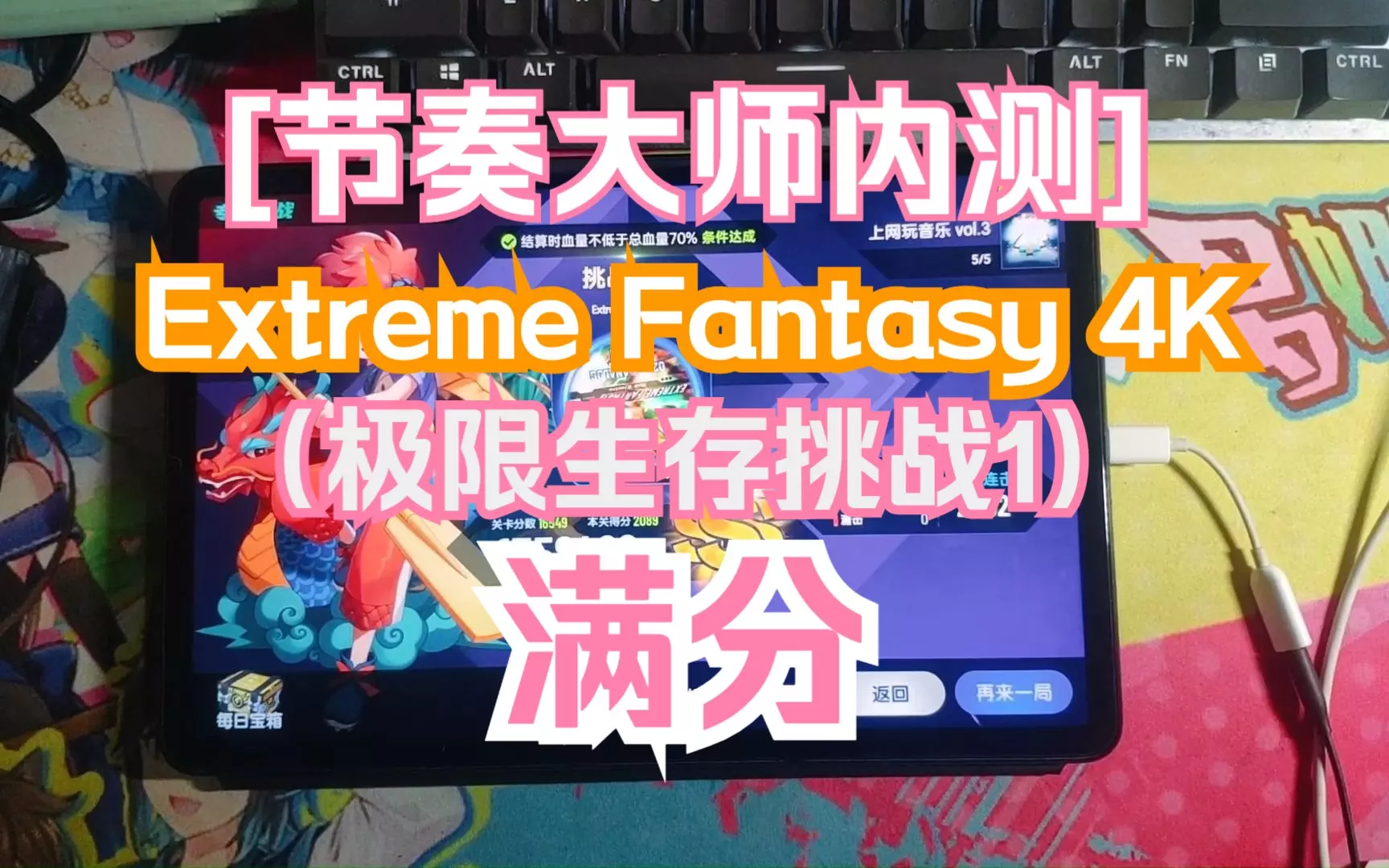 感谢@MSTdyzqYZQ 借号 很舒服,原来打音游可以这么爽 还有就是板子的满分截图做视频封面比较完整,不会像手机一样得截一半 适应中