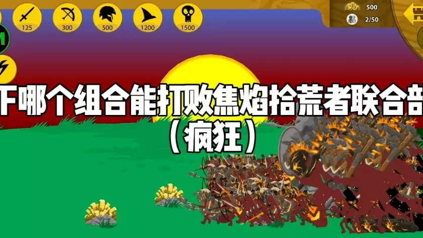 这是《火柴人战争遗产》的游戏日常内容,以电子斗蛐蛐的形式展开,设置了矿工首领拉维斯与铁剑士的对战,拉维斯有堪比巨人的力量,铁剑士团战冲锋能力强,引发五十名拉维斯能否战胜五十名铁剑士的对战悬念。