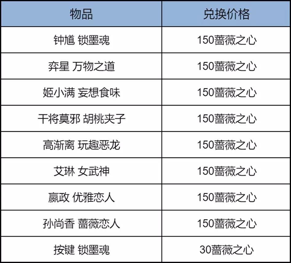 商城入口:商城-兑换-蔷薇之心