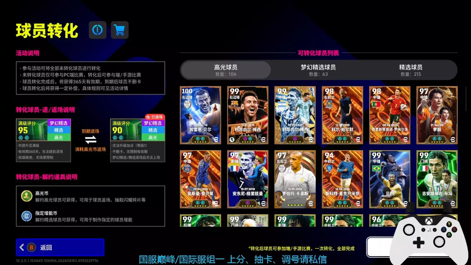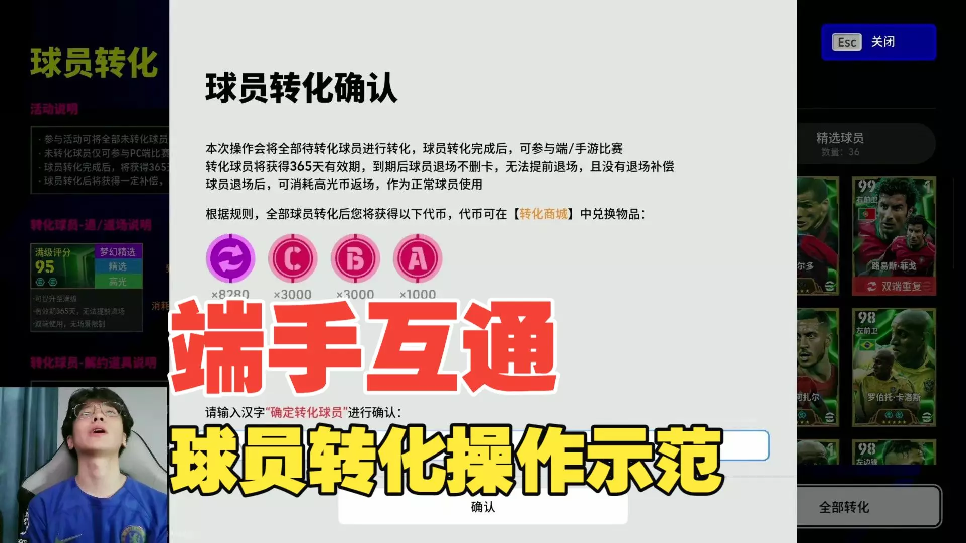 这是《实况足球online》的相关情报内容,视频讲解了该游戏端游正式服的各类问题,包括球员更衣室设置、球员转化福利、月卡永久卡奖励,还提及球员退场返厂等内容,帮助玩家了解游戏相关机制与福利。