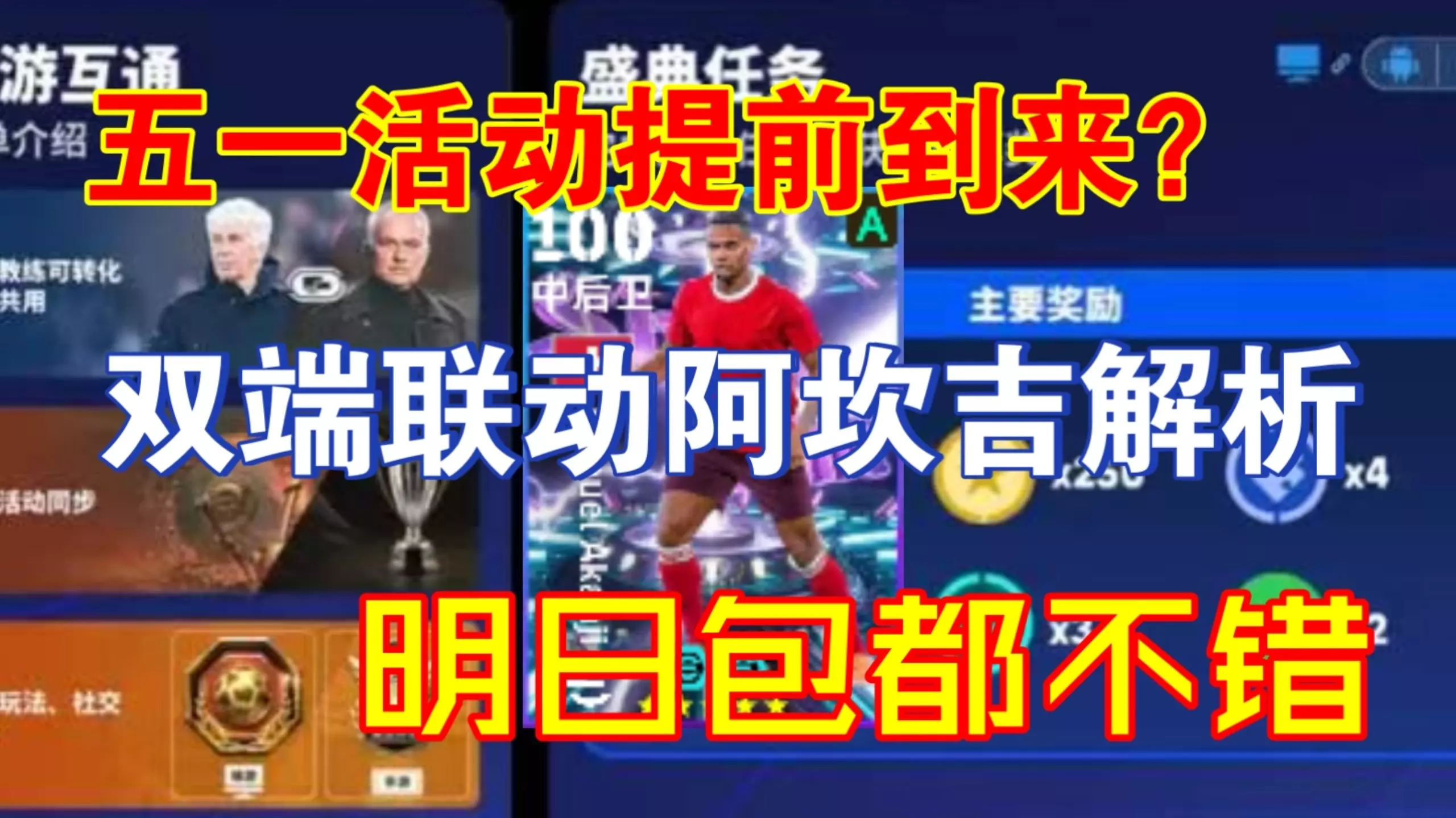 实况足球手游推出端手游互通奖励活动,完成任务就能免费获取双增能梦幻精选阿坎吉,同时鲁梅尼格、埃托奥也同步登场,玩家可参与活动赢取丰厚福利。