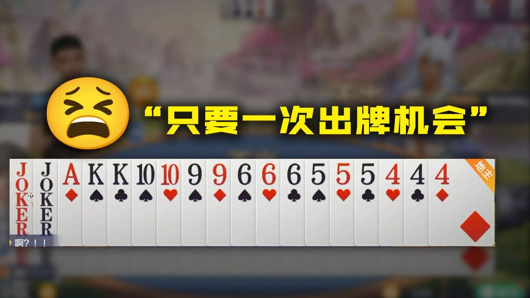 这是一则欢乐斗地主的搞笑对局内容,玩家作为地主,手牌不佳以为必输,对局中对手打出牌型后自己只能选择要不起,后续出牌过程充满戏剧性,带来欢乐的游戏体验。