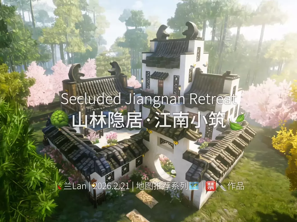 这是玩家“下头の小馨”在米加小镇世界中原创的江南风建筑,呈现了雨中的江南庭院景致,有凉亭、石榴树、池塘等中式元素,充满江南韵味。