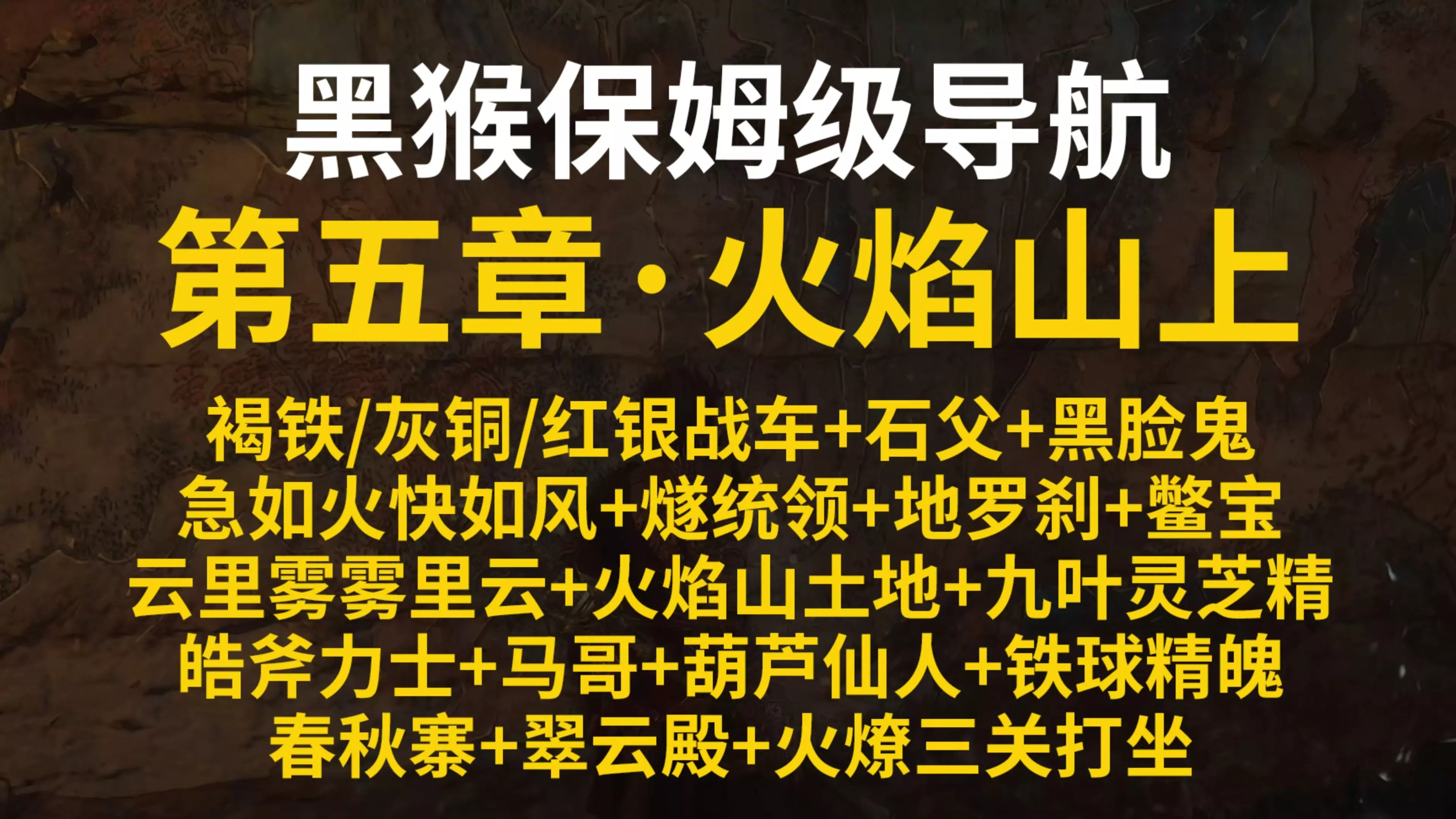 这是《黑神话:悟空》第五章火焰山的全收集全流程攻略,包含区域内的战斗指引、地形探索提示等内容,助力玩家完成该章节的全收集与流程推进。
