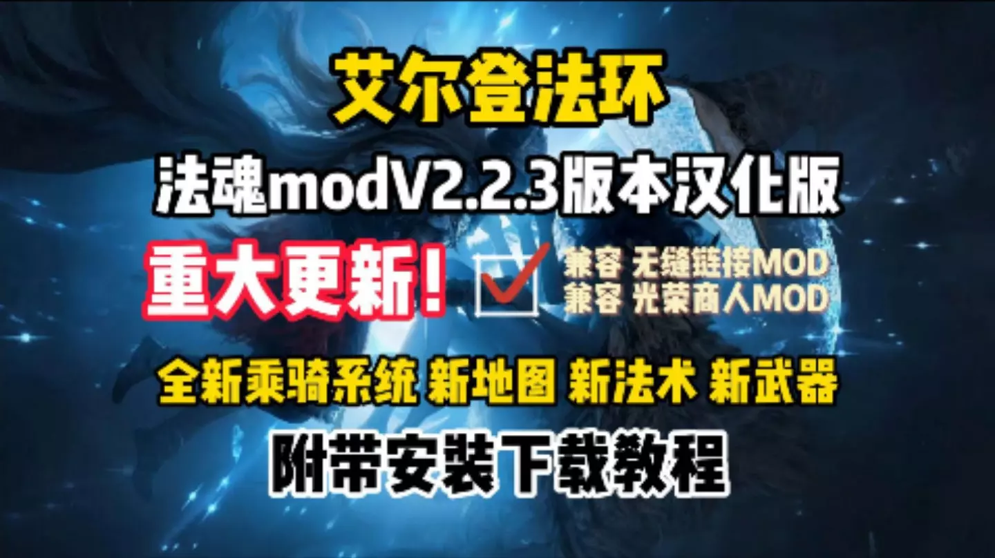 4月27日分享艾尔登法环无缝联机mod整合包,包含法魂ERR等9款大型整合包,具备光荣商人、幻化服装等功能,还有人物、坐骑、武器美化,搭配零门槛简单使用教程,助力玩家轻松开启联机游玩。