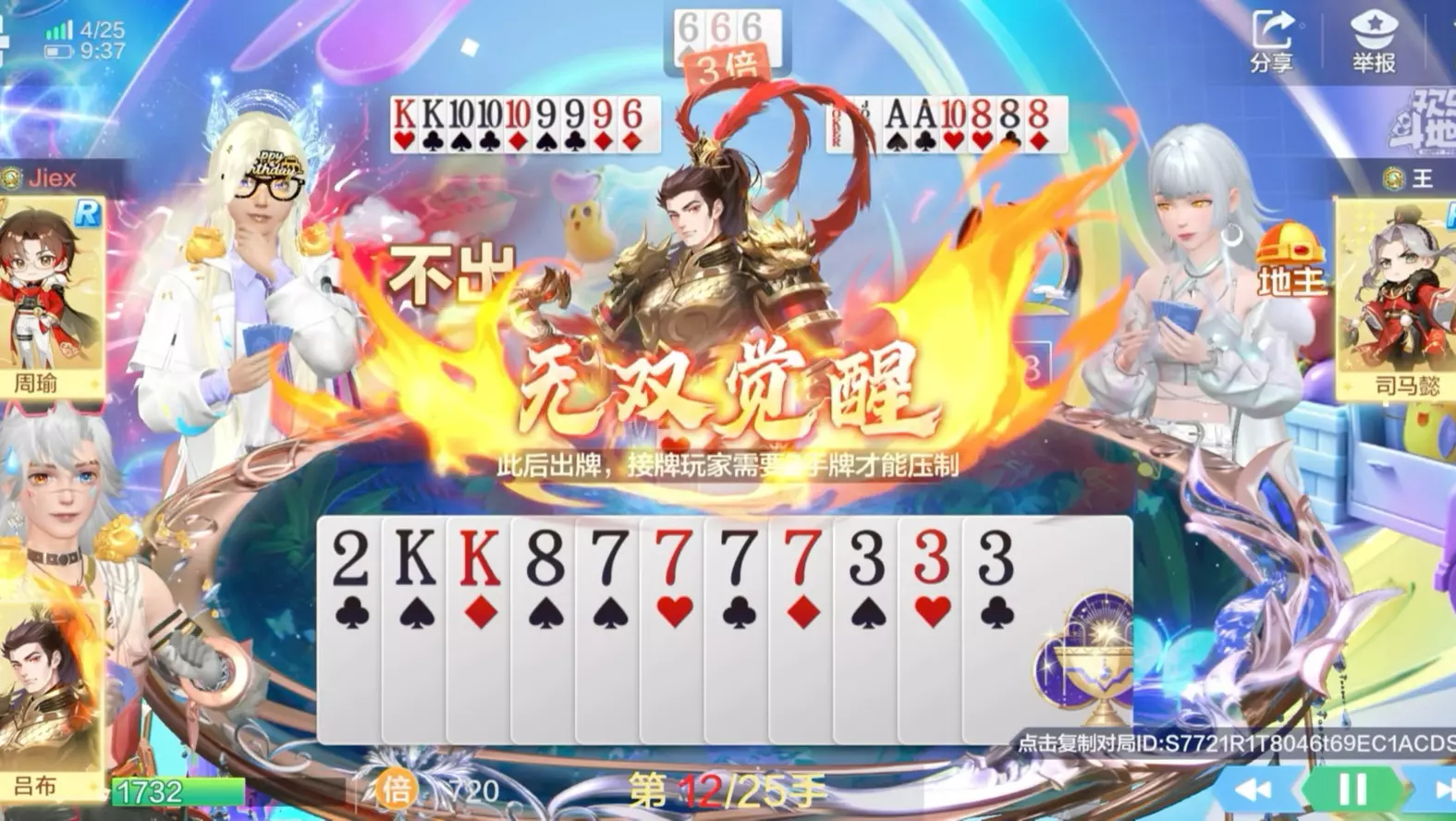 这是欢乐斗地主排位不洗牌场的精彩对局集锦,玩家使用女娲作为地主,展示了叫牌、加倍等对局环节,牌型丰富,呈现了欢乐斗地主的趣味对战过程。