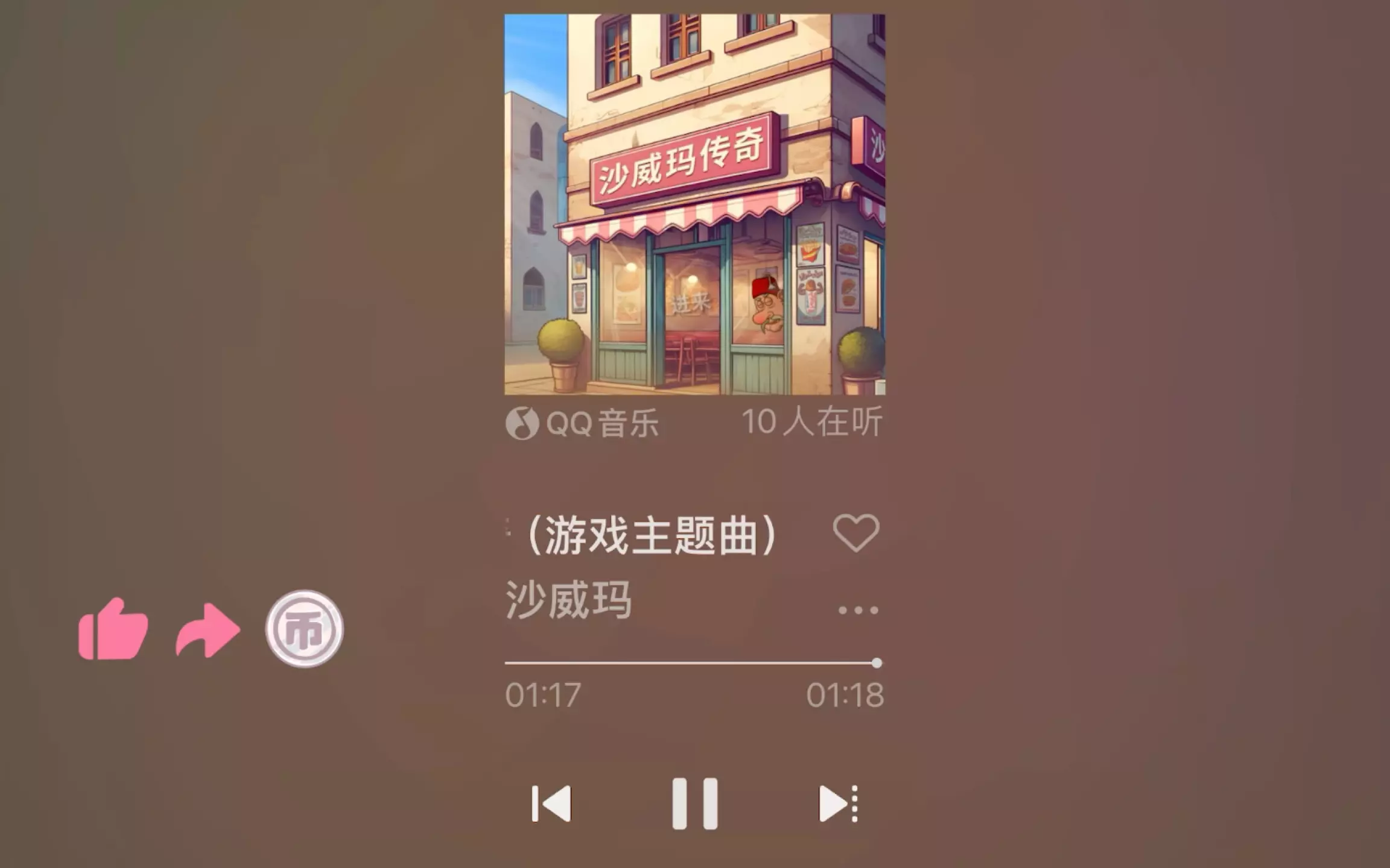 这是一则搞笑的《沙威玛の小曲》相关内容,该曲目是沙威玛传奇Remix,魔性的风格让人听完容易意犹未尽,相关画面围绕沙威玛传奇的卡通店铺和角色展开。