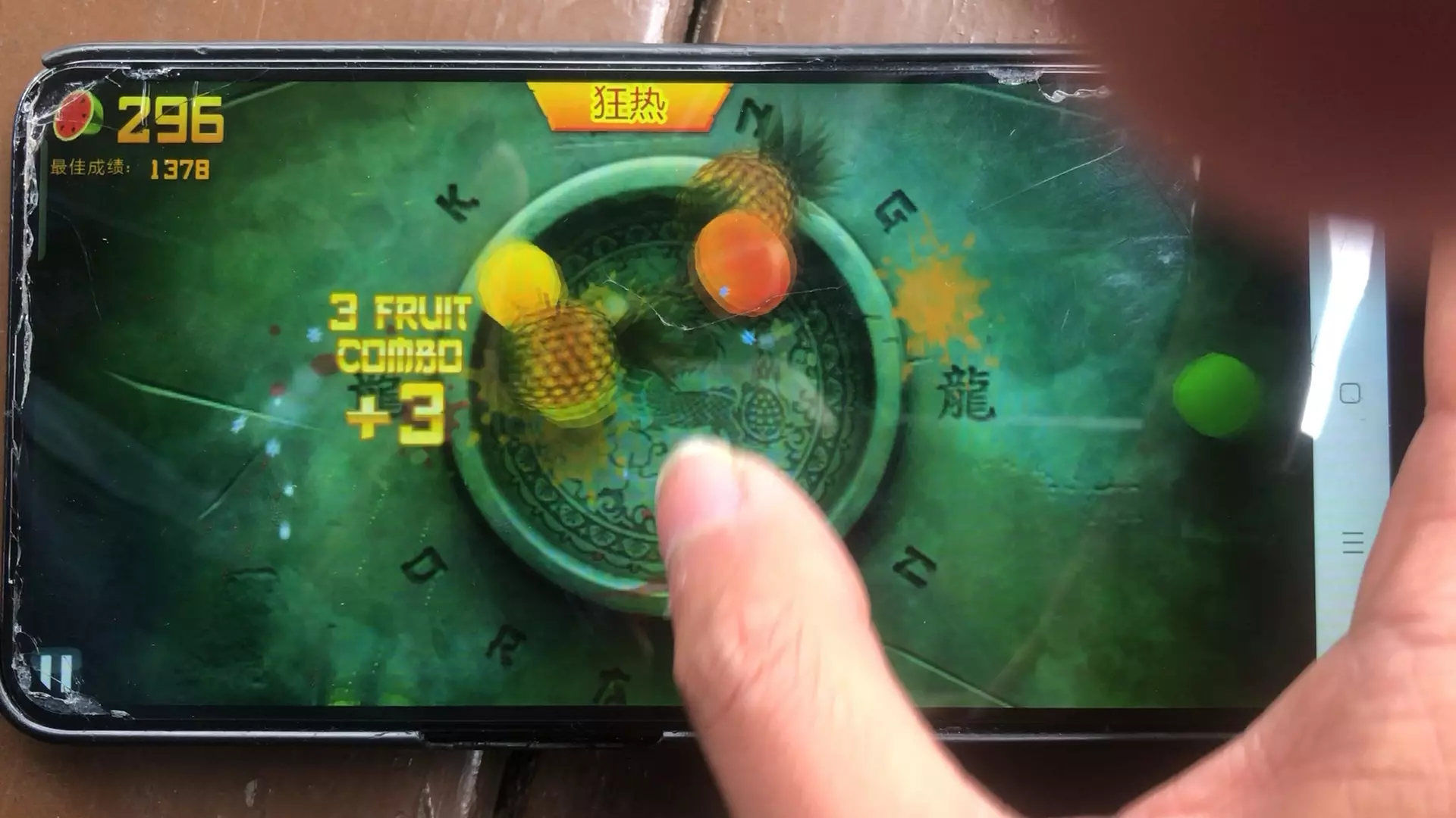 大电视玩水果忍者,切西瓜,切香蕉,切石榴,切草莓,太爽了。