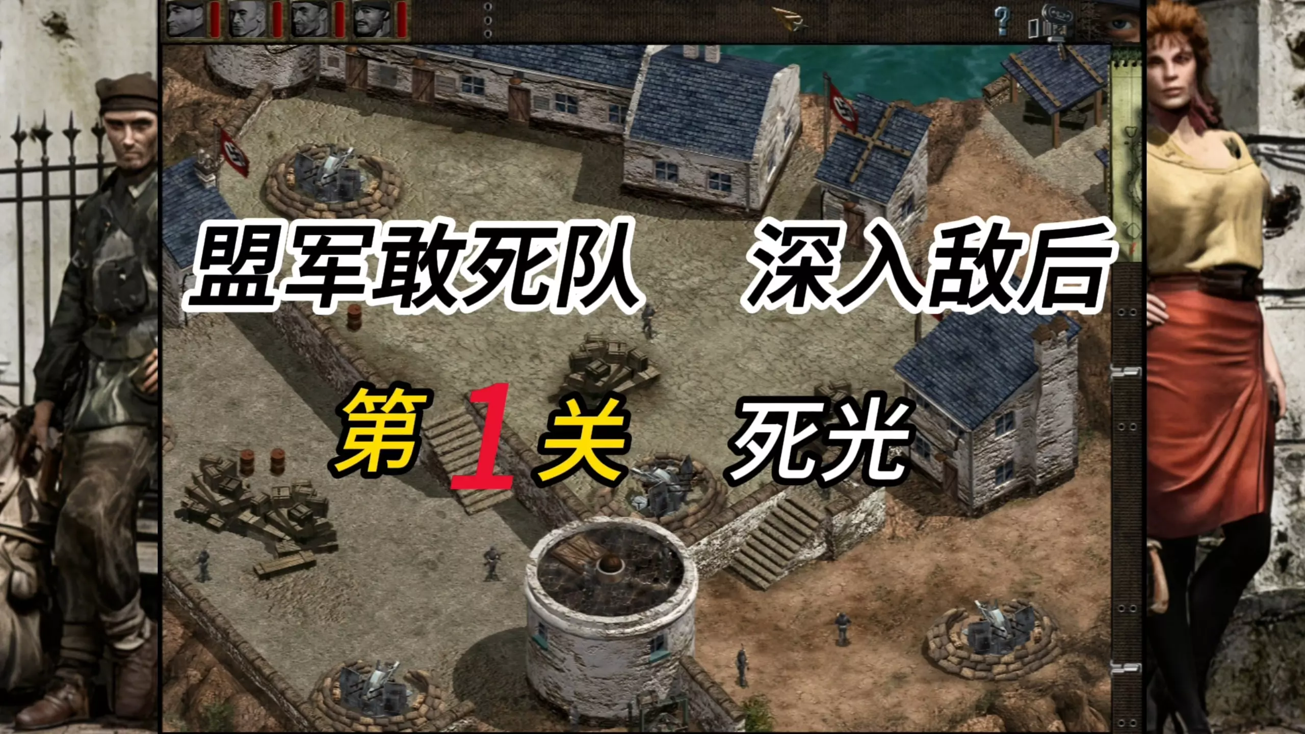 这关因为高处站着三个固定哨(油罐上两个、老大爬不上去的房子上一个,这个固定哨会被油库爆炸波及,且油桶爆炸只能震开在同一水平面上距离较远的盟军队员,对敌兵好像没有…