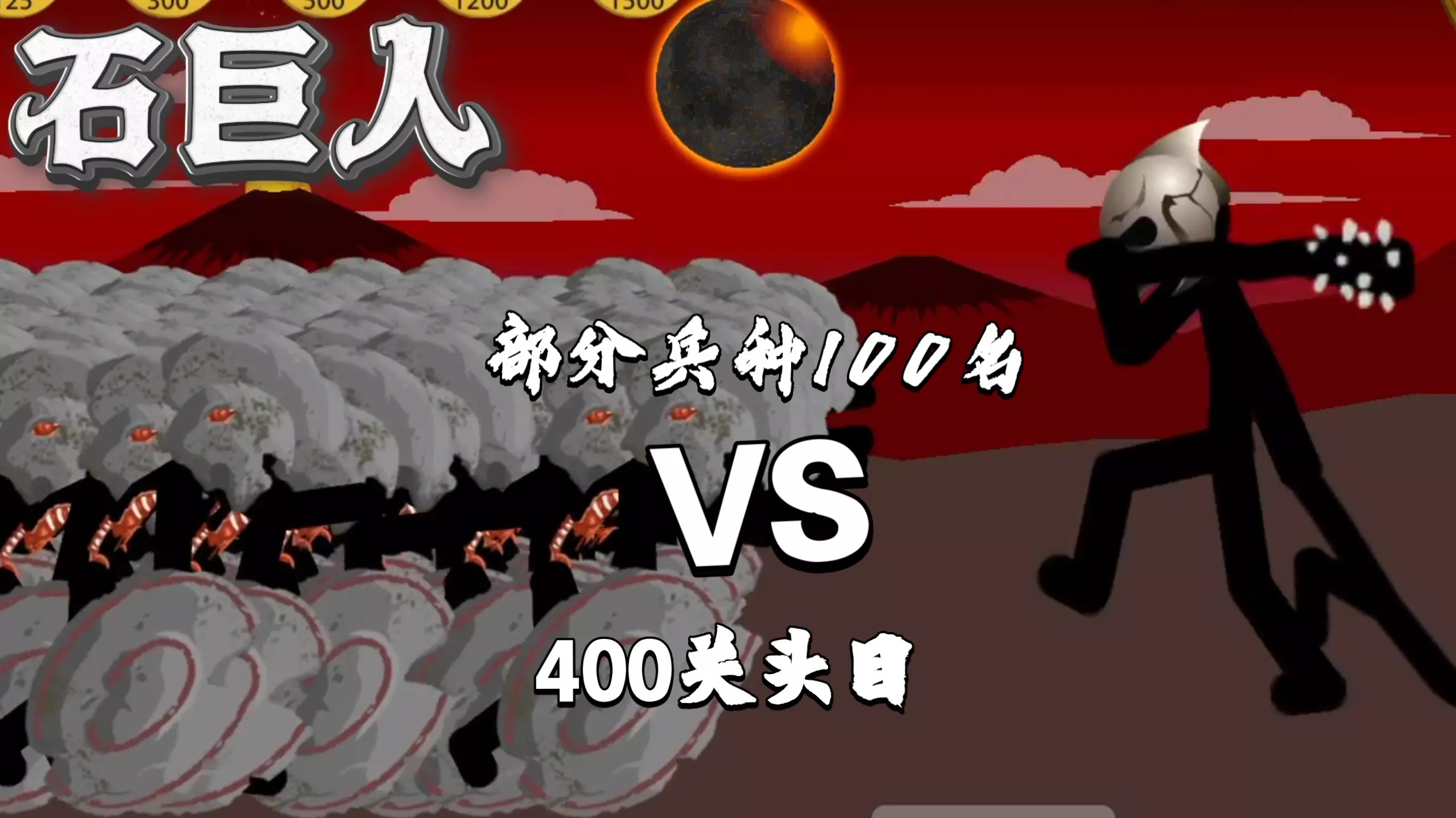 这是《火柴人战争》的对战内容,展示了改良后的红甲头目对战多种兵种的玩法,红甲头目拥有免伤70%、勾魂、反击等特性,还有巨人之力大招和地震技能,能对兵种造成大量伤害。