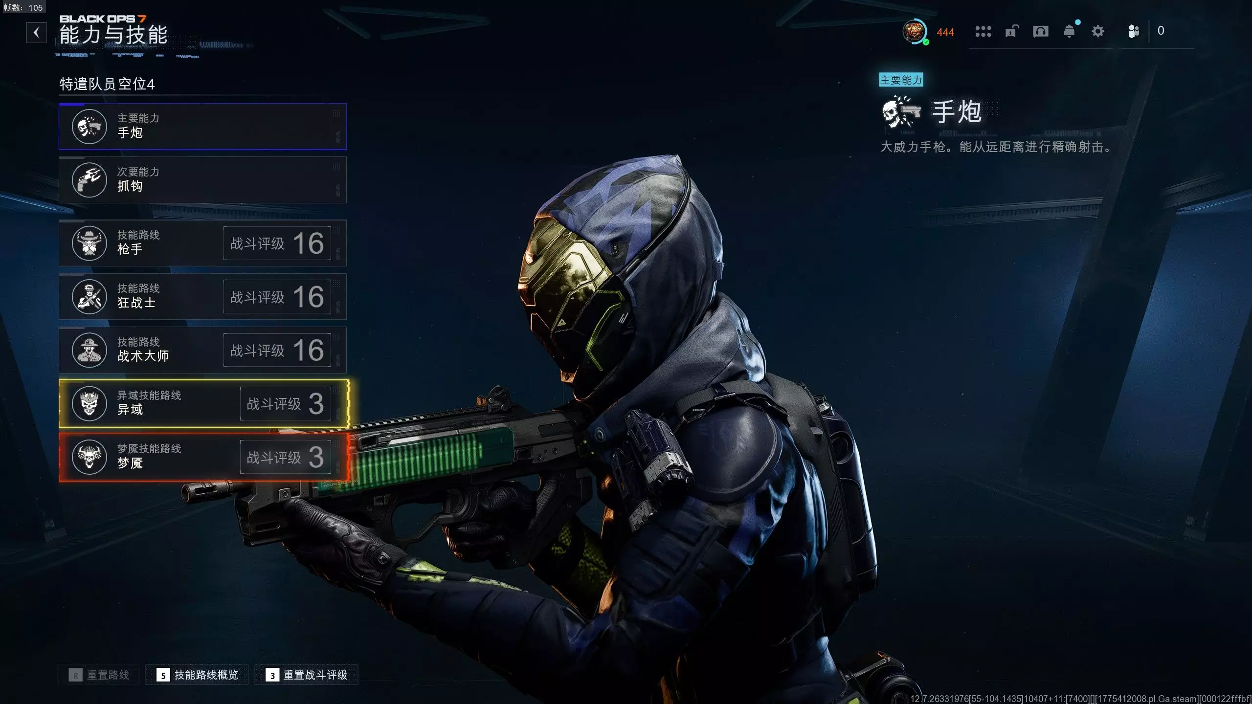 打指挥中心人品爆发开了个双破片的ak,拿去想洗个精英猎手,没料到洗了四五次,不仅把本来的高阶破片词条洗没了,还开始鬼打墙了——火力全开、神射手、战斗就绪交替出现,看来还需努力!