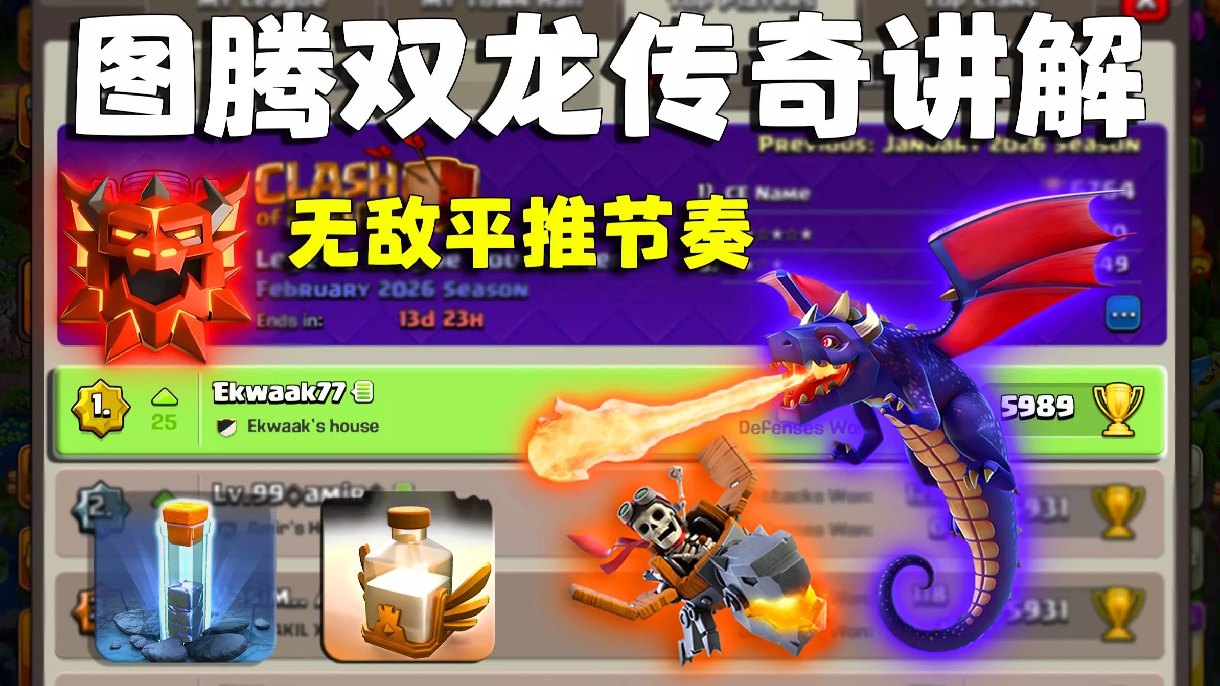 这是《部落冲突》的【图腾金龙】传奇一难度打法教学帖,分享了公式化打法,该打法在48场对战中成功44场,还附带了配兵链接,搭配实战画面讲解操作细节,助力玩家在传奇杯1段位取得好战绩。