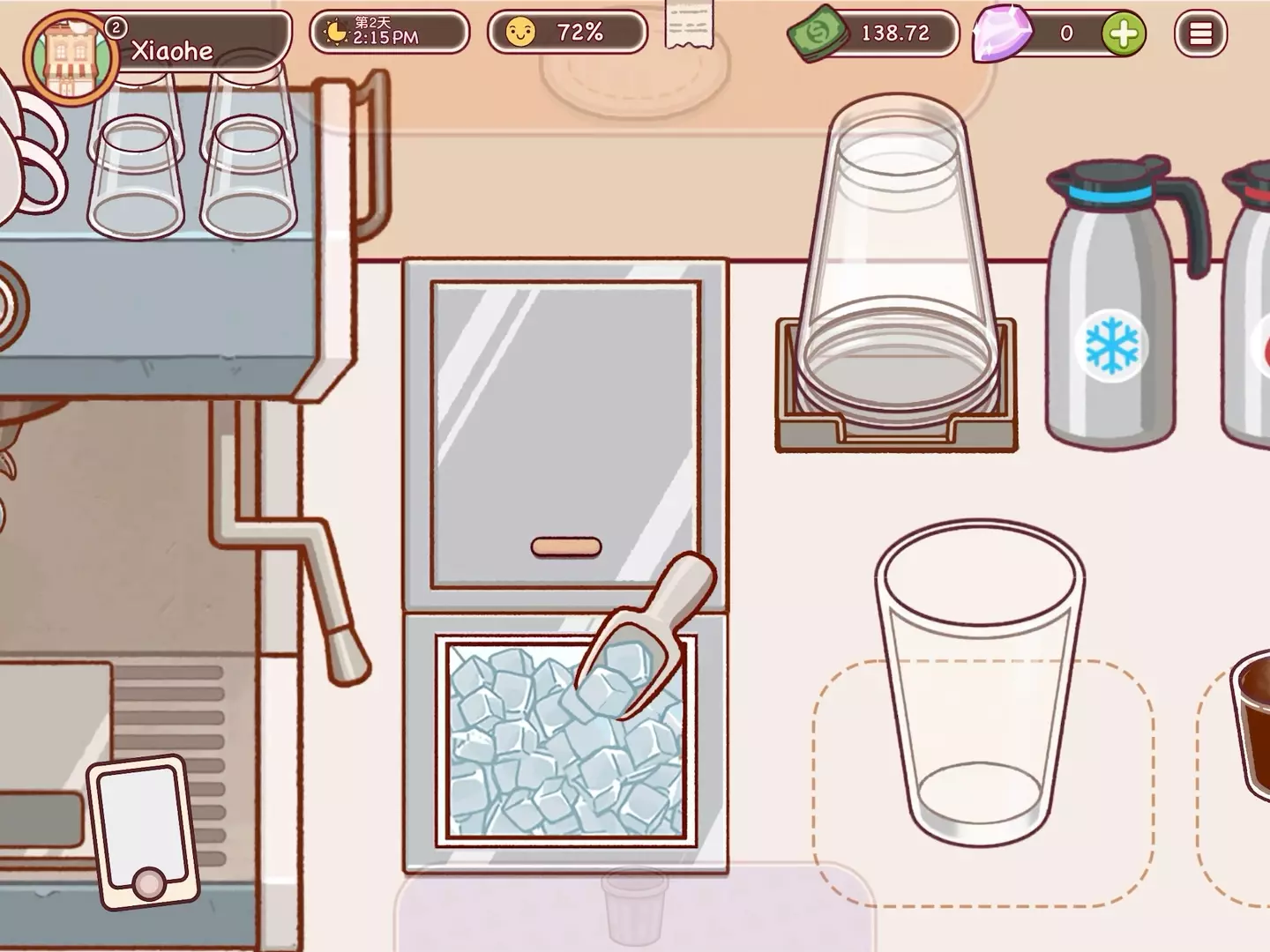 这是模拟经营游戏《可口的咖啡》的破解版内容展示,呈现了游戏里制作咖啡的各类操作场景,包括萃取浓缩咖啡、打发牛奶等,还有咖啡店的经营界面,能体验咖啡制作与店铺经营的乐趣。