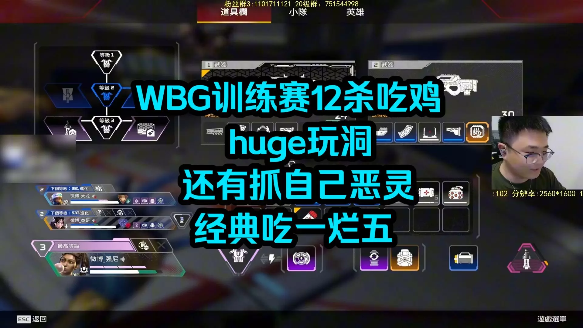 这是pro训练赛里的《Apex英雄》对局,VKG在圈内打出12杀的亮眼操作成功吃鸡,卡吊A配合十分默契,让QQ都有了危机感。