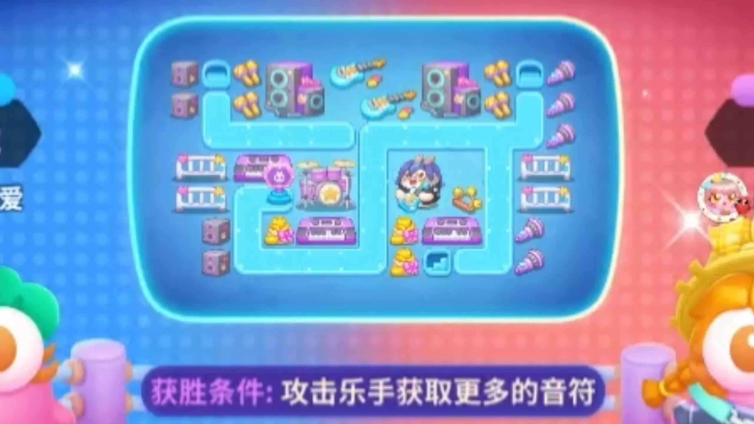 本图使用蝴蝶结火瓶月亮,需注意锁定乐手和留兔搬家的时机。拆迁锤可必打开中间位置,钱袋可在初期建造更多火瓶,煮包先前使用蝴蝶结火瓶泡泡+三道具打出324音符。本视频仅供参考。