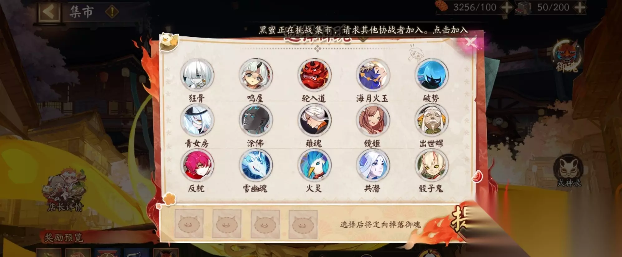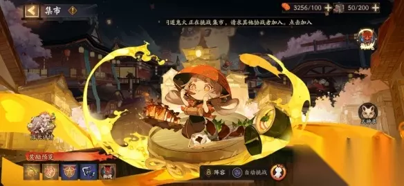 ※活动期间,每日凌晨0点会获得50个食盒,最多可存储200个食盒,超过存储上限的食盒将无法获得。 ※参与集市挑战需要消耗1个食盒,可享受「自选御魂」掉落加成,挑战成功有概率获得「千味福袋」、「玉食元宝」、「阴阳寮勋章」、「自选御魂」等奖励。 ※「阴阳寮勋章」每日最多可获得30个,当天新加入阴阳寮的阴阳师大人需要第二天后才能获得「 阴阳寮勋章」 ※阴阳师大人也可选择消耗6点体力挑战集市,不享受「自选御魂」掉落加成,仅概率掉落除了「首 领御魂」之外的「随机御魂」,挑战成功有概率获得「随机御魂」、「大蛇的逆鳞」、「四星青吉鬼」等奖励。 ※9月17日10:00绘卷活动开启后,参与集市挑战将额外概率掉落「绘卷碎片 」。 ※每日可消耗体力挑战集市999次。 ※店长食灵、店长饭笥在阴阳师大人挑战集市时出战,同时阴阳师大人还能最多出战5位式神。 ※店长食灵、饭笥的厨艺效果会对挑战集市的式神有增益效果,具体增益效果请到「店长养成」-「厨艺 」界面查看。 ※每日允许组队挑战集市100次,被邀请的玩家仅前10次有助战奖励。
