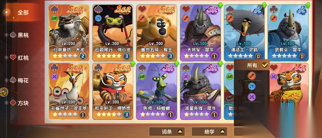 本游戏共有5个职业,分别是坦克、辅助、近战、刺客、远程;其中近战、远程、刺客可统称为输出,构成了传统意义上的战法牧铁三角,这和功夫熊猫中阿宝、盖世五侠的团队协作理念不谋而合,可见合理搭配英雄,才能发挥出最强战力。