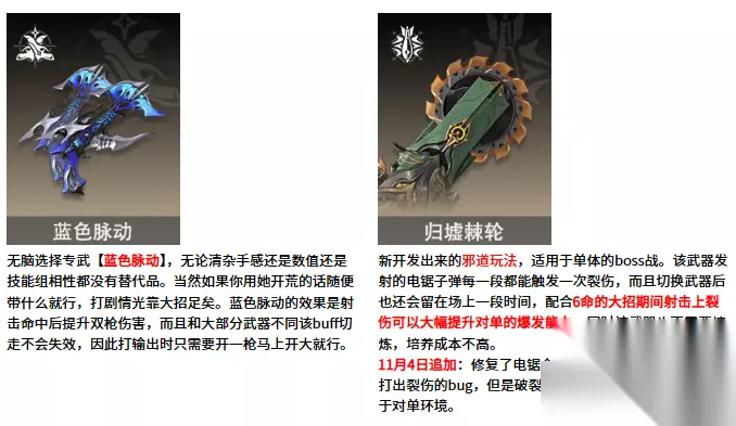 二、远程武器推荐 1、蓝色脉动:专武,使用此武器造成伤害时获得双枪武器伤害提高45.0%效果,持续15.0秒。 2、归垆棘轮:除了专武可以选择的下位替代。