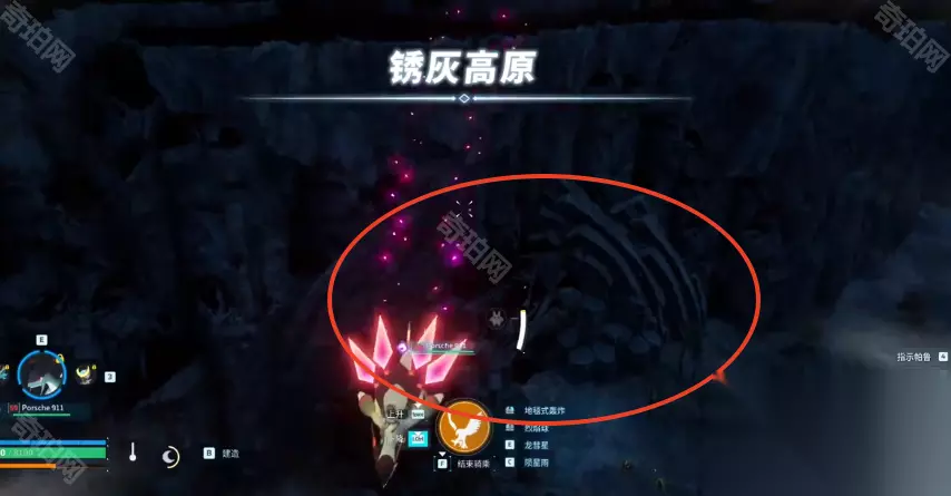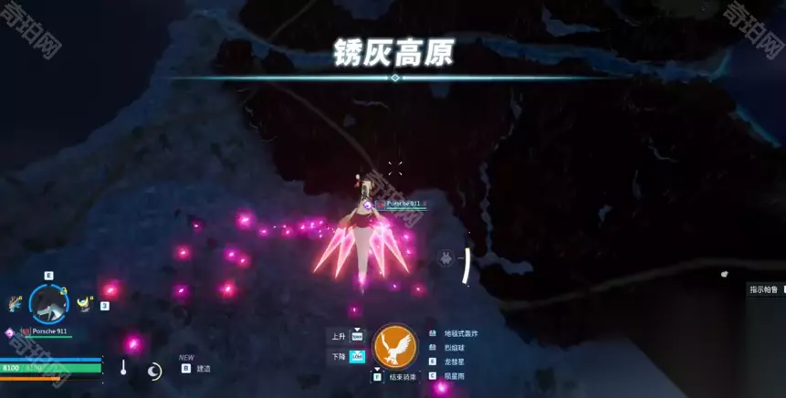看到悬崖后我们往下飞,这是游戏界面上会提示到达了锈灰高原
