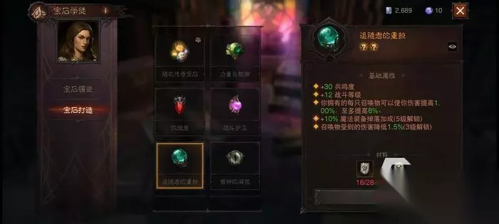 这个宝石则是根据召唤物的数量提升输出,最多是6个召唤物,大家后续搭配个分裂石头人也是可以吃满加成效果的。而且还能够让我们召唤物受到的伤害降低10%,是2星宝石当中死灵法师必备的宝石。