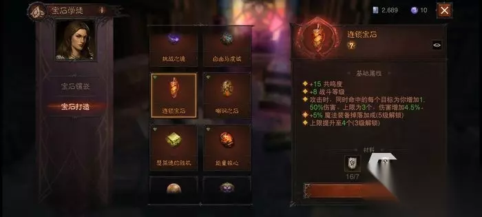 连锁宝石,攻击多个敌人的时候可以提升伤害,召唤物的aoe攻击还是比较多的,实战当中这个伤害加成效果基本上就是全程吃满。而且面对boss的时候,对面召唤出小怪我们的这个宝石增益也可以瞬间最大化,算是输出职业必备的宝石。 【2星宝石】