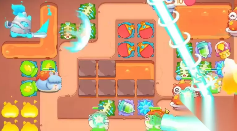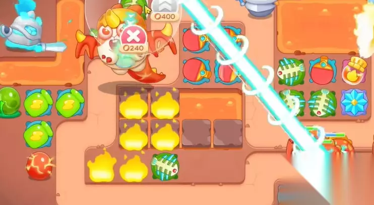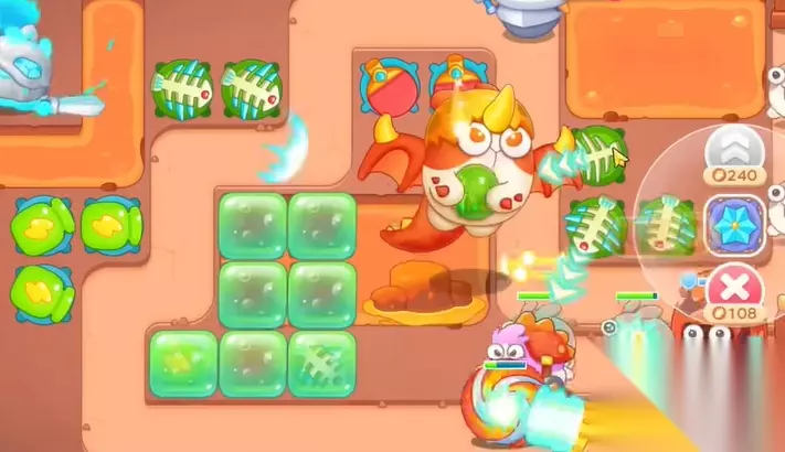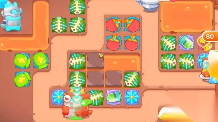 3、钱袋打掉之后,空出位置,继续建立瓶子炮,清理周围障碍物。