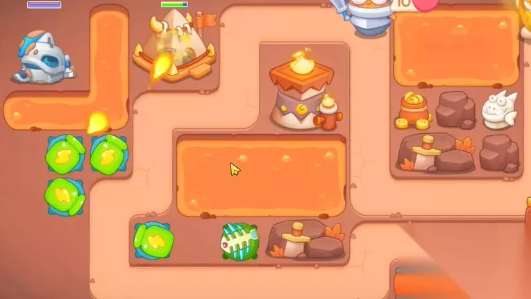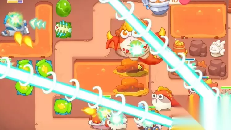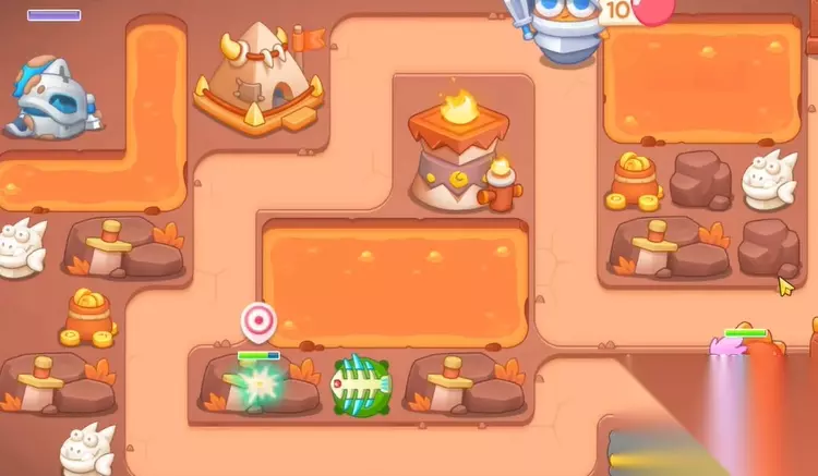 保卫萝卜4饿龙传说攻略 保卫萝卜4饿龙传说第60关怎么过 1、开局建立一个鱼刺和手电筒,鱼刺锁定旁边岩石。
