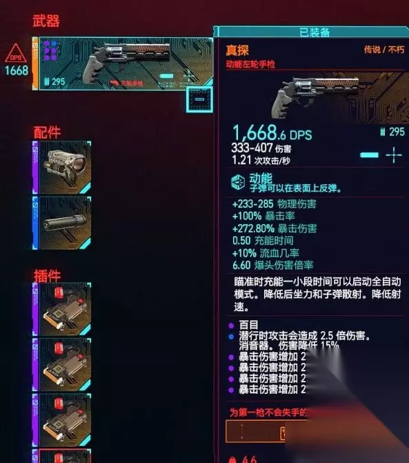 三、四季宝模式选择: 一开要从锁头或是修脚两种模式选择一个,干掉50名敌人后永久切换模式。但是在这之后再干掉一定数量的敌人之后(我不记得是多少了,反正dps也不错,没事就用用)会解锁一个新的任务 手枪会告诉你他想起原主人是谁了,是那个让你做赛博精神病的中间人瑞吉娜 如果在和他对话的时候跟他讲你不肯还还会非常生气 此时完全可以不理这个任务继续使用小手枪但是不清掉这个支线就很难受的强迫症来说是不可以接受的!所以发现这个任务可以通过其他帖子提到的刷枪方法在刷一个四季宝出来交任务,并且这样支线会显示为已完成。 四、四季宝刷枪方法: 先把四季宝丢在地上 然后长按F不要松手,按esc保存一个存档(记得提前备份,尚不清楚这种利用漏洞的行为会有什么副作用) 然后直接读档。你会发现地上有一个四季宝,包里也有一个 此时似乎要捡一下地上的四季宝,再把包里的第二个四季宝丢掉,不然似乎交不了任务 如图,这样就可以在交完任务之后捡走地上的四季宝继续用这个憨批小手枪了。
