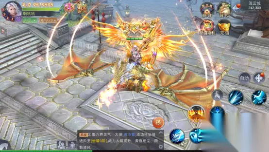3.剑神觉醒 天下唯我独尊 《逍遥江湖》在保留各大竞技玩法的同时也新增加了自创全新的觉醒玩法,“风云、赤霄、神雷、寒霜”每一阶除了在属性上的提升,也新增了更多的技能形象。同时各个江湖称号剑神,剑尊,剑帝除了无敌剑气加持让你战力爆表以外,还配备有独有的全屏技能炸翻全场!