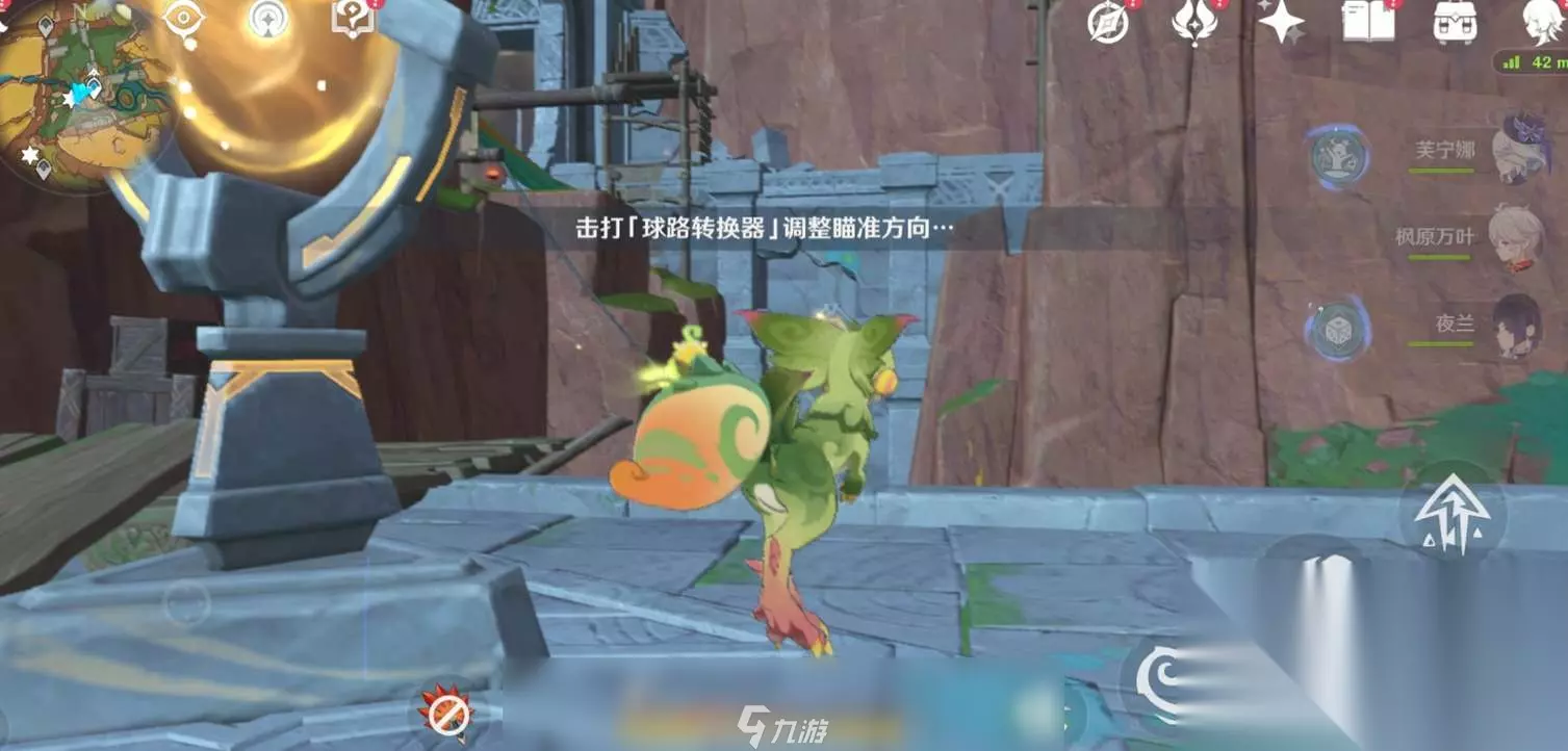 3、来到传送点右侧,地图东方向拾取传接球,射向转换器传接球弹回后拉动机关,打开闸门,使闸门未关闭前球先通过。 开启前方的宝箱获得第三把钥匙。