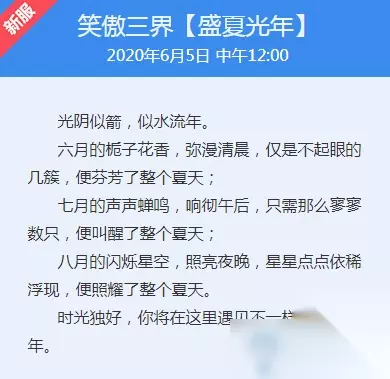 笑傲三界【盛夏光年】 开服时间: 2020年6月5日 中午12:00