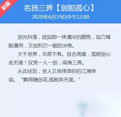 名扬三界【剑胆孤心】 开服时间: 2020年6月19日中午12:00