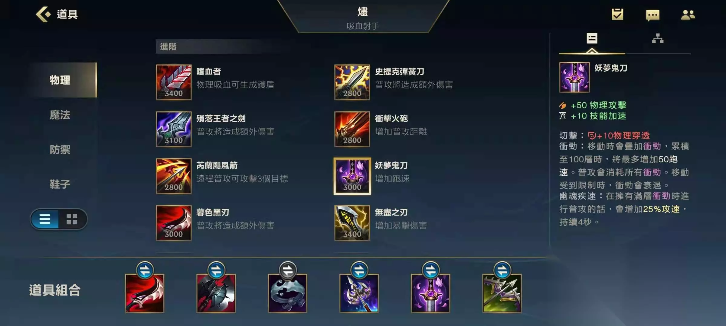 这三件共计可为赛娜提供高额的攻击速度、暴击几率、暴击伤害以及攻击力,因为赛娜的平A范围是可以增长的,且和1技能的施法范围一样,因此赛娜就要利用手长的优势多A对手,这样攻速的提升将大大提升赛娜的输出效率,直接A+1技能+A+A就可以折磨对手了。暴击几率和暴击伤害则是围绕赛娜的被动,这样高暴击几率下赛娜的平A不仅远还非常痛。 剩下的就是这三件装备的被动效果了,绿叉能为残血状态下的赛娜提供护盾,提升她的生存能力,火炮则提升赛娜的攻击范围和普攻伤害,无尽则大大提升赛娜的暴击伤害。 鞋子赛娜选择吸血鞋,附魔水银最好,其余装备可作出复活甲、重伤刀。 二、穿甲流 核心装备:幕刃、幽梦、排眼刀