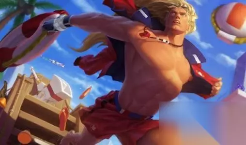 宝石的这款这款泳池派对皮肤,可谓是非常骚气的了,金黄色的长发,裸露着上身,穿着泳裤,一副夏天的气息,可以看到,宝石的肌肉线条还是非常完美的,壮硕的身体,给人一种踏实的感觉。 TOP5:德玛西亚之力-盖伦
