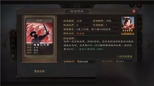 【拆解战法】 主动战法 联姻 发动概率:45% 选择一名异性友军,持续2回合,目标受到治疗效果或功能性增益状态时,自身有45% → 90%概率获得相同效果(治疗效果为50%)(发动几率30%->45%)