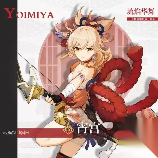 4、宵宫 可爱的元气少女,性格率真直率,喜欢和小朋友玩,是阳光、鼓舞人心的角色