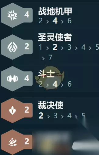 二、羁绊组成 4战地机甲、2圣灵、4斗士、2裁决使、2迅捷射手