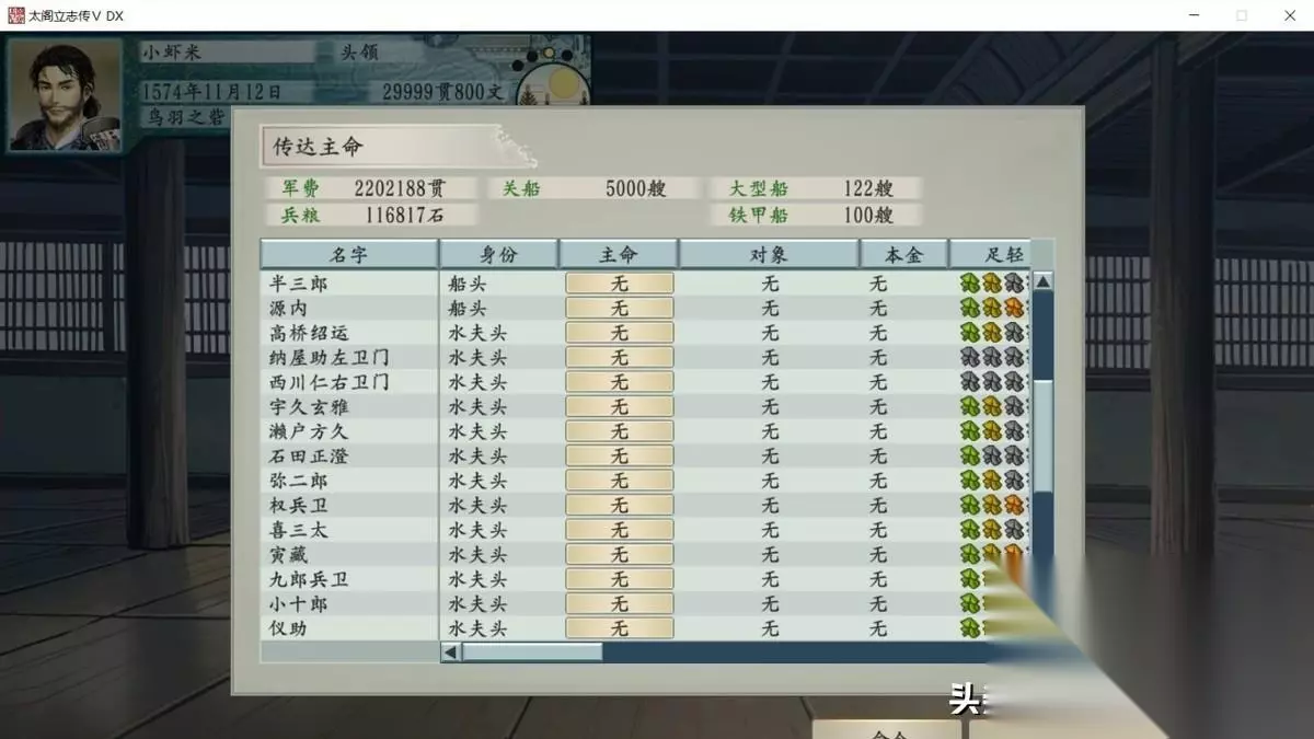 在《太阁立志传5DX》中,各个主要职业(武士、忍者、海贼、商人)都需要一些强有力的手下,才能帮助玩家在和敌人地竞争中获得优势。在这个游戏中,即使玩家属性再高,能力再强,但是属下拉跨也是不行的。下面小虾米就给大家简单介绍下在《太阁立志传5DX》中,如何挖人以及如何提升挖人的成功率。