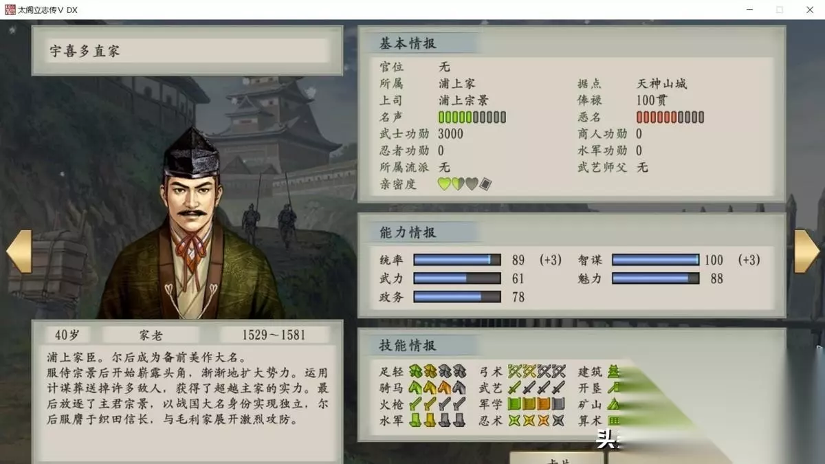 3,宇喜多直家。属性强,鬼谋、威吓都会,战斗能力也极其出色。 喝茶就能招募。 4,山中鹿介。在早期剧本就是浪人,发现后趁早招募。 5,木下藤吉郎。没想到把,这货也是个墙头草,把他从织田家也能挖过来。 6,织田家的木下小一郎、龚川一益等也是容易挖到的角色。