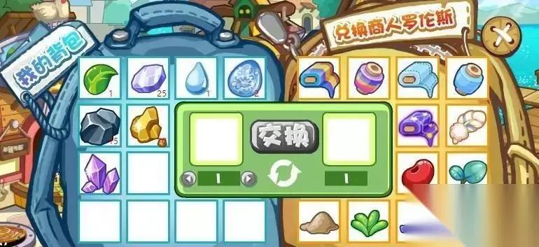 点击罗伦斯的柜台就可以进行物品交换。