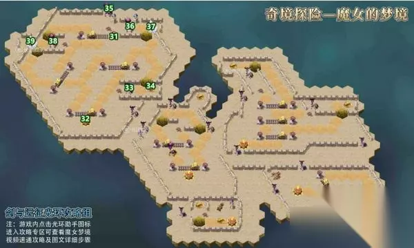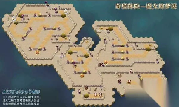 在剑与远征游戏中有非常多的副本任务,而魔女的梦境就是其中之一的一个任务,很多的玩家在玩这个任务的时候不知道怎么去进行操作,那么剑与远征魔女的梦境怎么玩呢?针对这个问题接下来就让小编为大家带来剑与远征魔女的梦境攻略分享,希望可以帮助到广大的游戏玩家,不清楚的玩家就快来看一下吧! 剑与远征魔女的梦境攻略分享 魔女的梦境是国服奇境探险的第十四个副本,正式服于9月18日上午8点开放。重要奖励有种族抽×10,坡尔币x3000,钻石x1000,精英灵魂石×60,稀有灵魂石×200以及若干金币、经验。本次副本难度中等偏下。下面是魔女的梦境的图文攻略,分为三个部分,地图导航攻略和图文详解攻略以及精英怪打法建议。 1.到1的位置,获取奖励 2.到2的位置,点燃火种 3.到3的位置,获取奖励 4.到4的位置,消灭怪物 5.到5的位置,消灭怪物 6.到6的位置,操作机关,使稻草移动到标点6