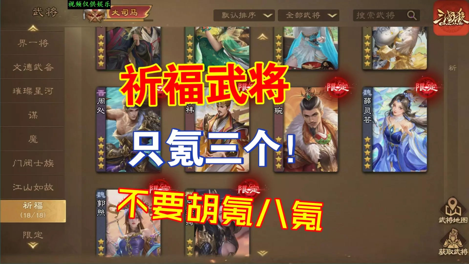 一位入坑一年半的三国杀玩家,在游戏的祈福活动中,经过祈福抽取,成功拿下自己首个大祈福限定武将,还获得了其他武将、道具等奖励。