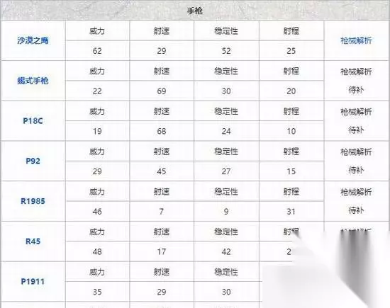 6,手枪 ①使用难度最高的枪械。