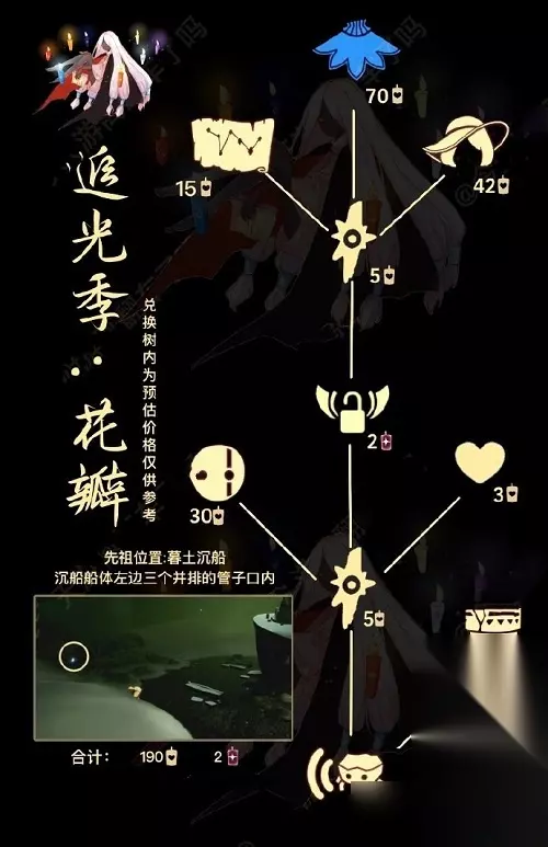 3、本次先祖可以兑换金边勾勒的幽蓝花瓣斗篷、具有海滩风情的宽檐度假草帽、蓝色印记的左眼条纹面具、憨厚嘹亮的螃蟹叫声、上宽下窄的废旧荒原管道以及一份曲调动听的乐谱,有喜欢的玩家千万不要错过咯,上一次复刻还是2020年,错过就不知道要等多久了。 兑换图: