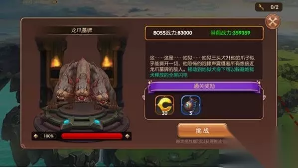 进入这个界面后,我们能看到对应关卡的更详细的信息。如BOSS的战力,形貌,简介以及当前血量情况,简介当中还会以标蓝的形式来显示BOSS的特殊设定,这点对挑战的玩家来说尤其重要。此外,还能看到通关奖励和挑战按钮,点击这个按钮我们就可以开始挑战BOSS了。 玩法规则说明 龙之远征共分10个关卡,玩家需要突破重重关卡,才能进行最终挑战。在等级封印期间,部分后期关卡会附带封印效果,这种情况下的BOSS会有大幅度的能力提升,玩家可以在解封后再尝试挑战。 玩家只可单人进入挑战,每天可以挑战2次。每次挑战时对BOSS造成的伤害都会累计,下次挑战时BOSS血量不会恢复。另外更需要注意的是,BOSS在一段时间后就会进入狂暴状态,他的伤害将会大幅提升,挑战难度将会加大。 玩法奖励说明 玩法的主要奖励有龙玉以及龙币,获取的主要途径是关卡奖励以及排行榜奖励。同时,即使是已通关过得关卡,再次挑战时依然会有相应奖励,因此玩家不用担心在没有能力挑战下一个关卡时会浪费每天的挑战次数。 BOSS打法介绍 在上文已经了解到龙之远征目前共有10个关卡,每个关卡均有一个极具挑战性的BOSS。在下文我将简略介绍一下每个关卡中的BOSS的挑战要点。 第一关:海龙穴口